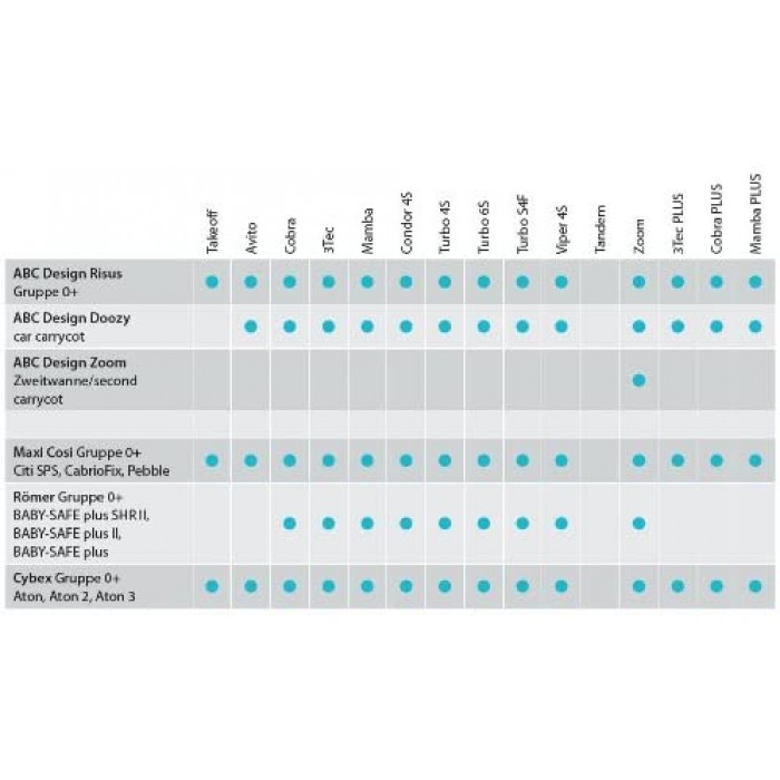 Со помош на адаптерите за беби колички, количките на ABC Design на наједноставен начин може да ги претворите во комплетен систем за патување со се што вие потребно за количката која ја поседувате. Адаптерите се поставуваат во специјално предвидените отвори на беби количките, а потоа врз нив се поставуваат транспортерите или пак корпите за бебе. Едноставна операција со само неколку клика. Соодветни за транспортери модел - Рисус, Хезел, Имола...