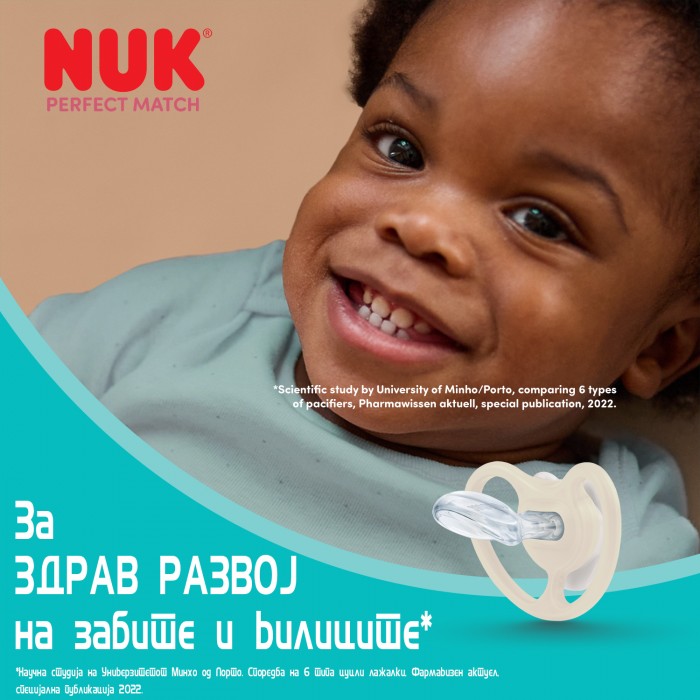 NUK цуцлите лажалки се најпрепорачуваните цуцли од страна на германските ортодонти, педијатри и патронажни сестри.** 100% од Германските ортодонти тврдат дека анатомските NUK цуцли не предизвикуваат деформации.** 99% од Германските мајки би ги препорачале NUK Space цуцлите на други, а 92% од германските доилки тврдат дека NUK цуцлите лажалки не влијаат врз доењето.*