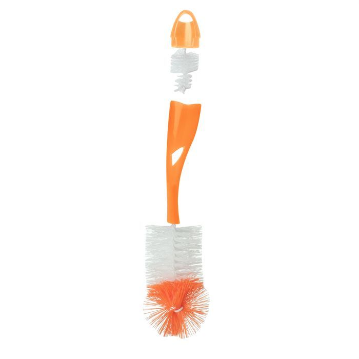 Tigex четката со двојна густина на влакната, 2во1 е специјално дизајнирана за миење на остатоци од храна од цуцлите и шишенцата. Благодарение на цврсто поставените влакна можно е правилно и целосно миење на остатоците од храна. Малата четка за миење цуцли е сместена во рачката на поголемата четка. Ергономскиот облик на рачката овозможува соодветен притисок и правилно миење. За подобри ефекти при миење може да ја користите НУК Био течноста за миење на беби приобор - артикал 10256361.