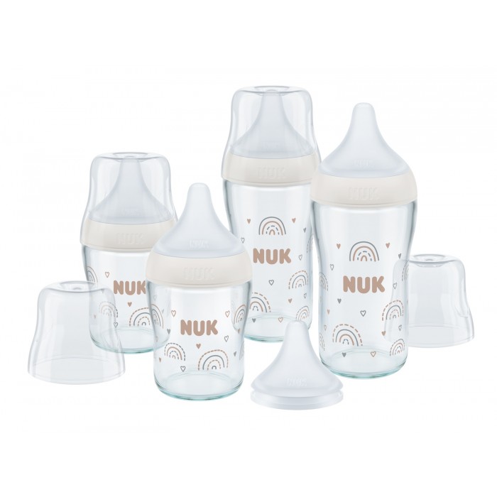 NUK Perfect Match Start Set Шишенца СТАКЛО за бебиња "Rainbow" 0+м