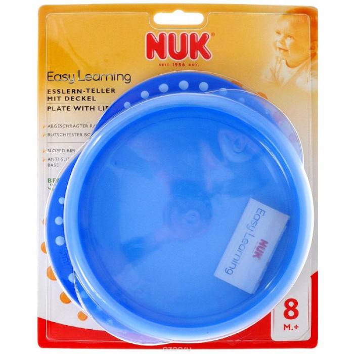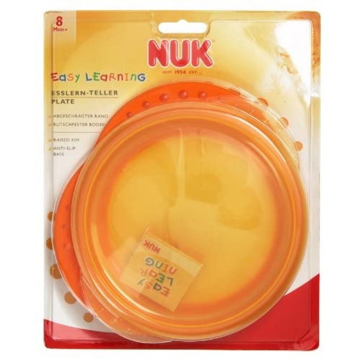Пораснавме! Наеднаш, не сакаме да седиме во крило и да не хранат како мало бебе. Сакаме како големи да јадеме сами, со свој прибор. NUK EASY LEARNING тањирот им овозможува на децата да се чувствуваат како големи додека јадат. Јадењето со нож и вилушка не е лесно, но NUK Easy Learning Тањирот има издолжени рабови за лесно ракување и одлагање на приборот за јадење. Нелизгавата основа спречува паѓање на тањирот од масата. Доколку падне направен е од некршлива BPA Free пластика и со тоа е траен производ кој долго ќе го поседувате. Тањирот е од материјал погоден за во микро печка, па така во него може да ја загревате храната. Исто така тањирот е погоден за миење во машина за садови. Произведен е во Германија и е наменет за деца од 8 месеци натаму.
