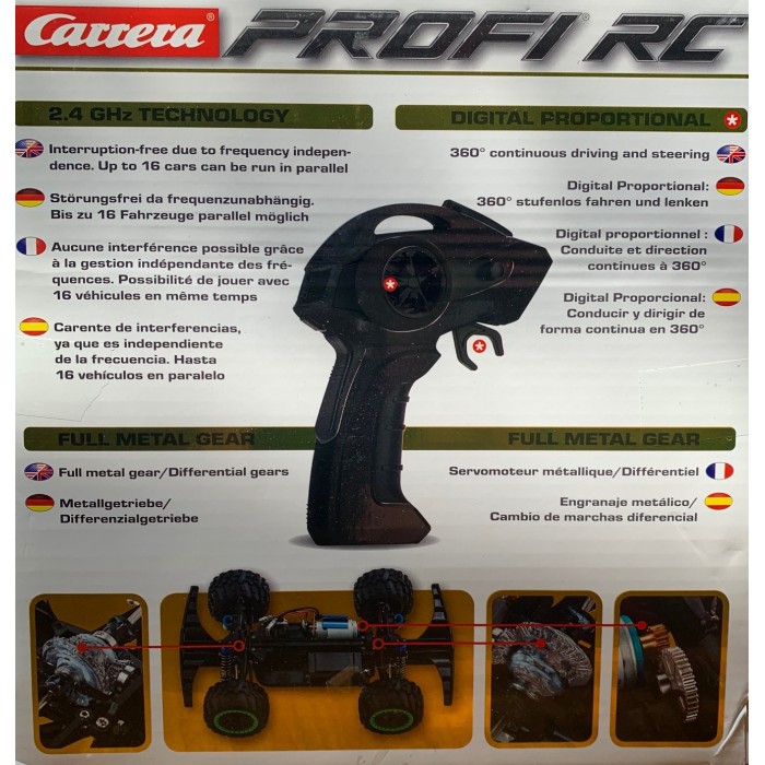 CARRERA RC CARRERA кола со далечинско "Jeep Trailcat PRO 50km/h" (14+г.) CARRERA кола со далечинско "Jeep Trailcat PRO 50km/h" (14+г.) Професионална реплика на легендарниот Jeep Trailcat која достигнува неверојатна брзина од 50 км/час. Модел кој се користи во професионални трки кои официјално се организираат. Моќна машина со големи пневматски тркала и погон 4/4, која еднакво добро се движи по рамен но и по OFF Road терен. Лесно и прецизно управување со ерго.. Category: Product #: 183019 Regular price: 9.990 ден. 9.990 Available from: Euroalba dooel