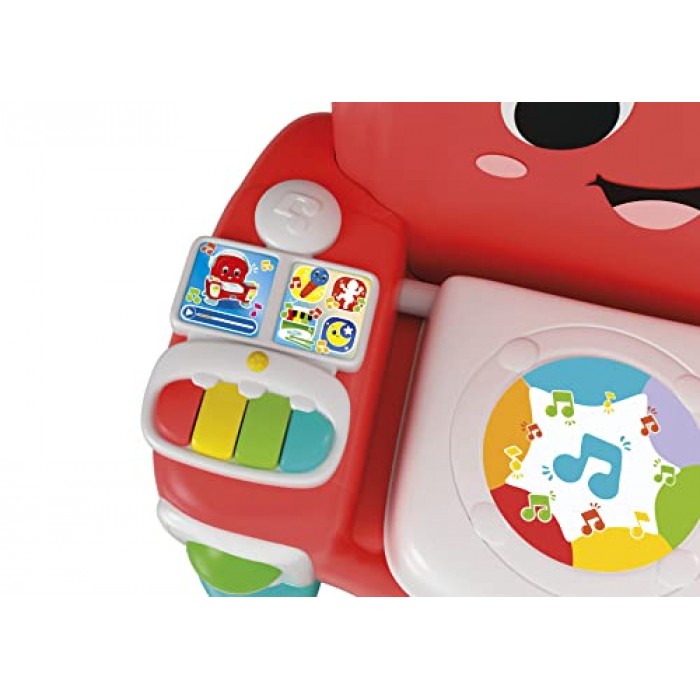 - Столчето има како додаток неколку музички инструменти: марака (тропалка или шејкер), стапчиња за тапан, музичка тастатура како и мала конзола на тач со осветлени команди за активирање на различни звуци и песни.