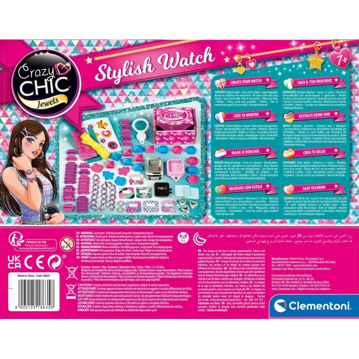 Clementoni Clementoni Crazy Chic Моден Часовник "Stylish Watch" (7г+) Clementoni Crazy Chic Моден Часовник "Stylish Watch" (7г+) Сет со вистински дигитален часовник кој може модно да го ускладите согласно вашите желби. Заменете го лицето на часовникот или ремчето, додадете некој украс и тоа е тоа...  Чаовникот е дизајниран по урнекот на часовниците за возрасни затоа што и младите дами сакаат да бидат како возрасните. Сетот содржи: дигитален часовник, 2 раз.. Category: Product #: 18635 Regular price: 952 ден. 952 Available from: Euroalba dooel