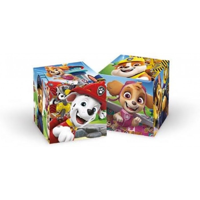 • Сет од 6 коцки со слатикте кученца од серијатаPaw Patrol за деца од 2+ години, за составување на 6 различни слики.