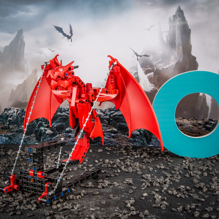 | Sodrzina | Set od oblasta na mehanika so 220 komponenti za kreiranje na 3 modela na zmejovi |