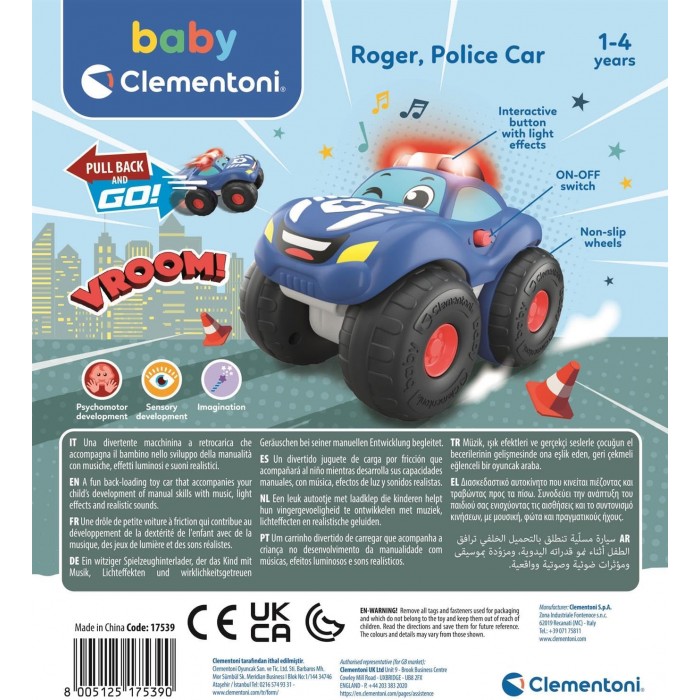 Clementoni Pull-Back Roger Police Car - Полиициски Автомобил интерактивен (1-4г)