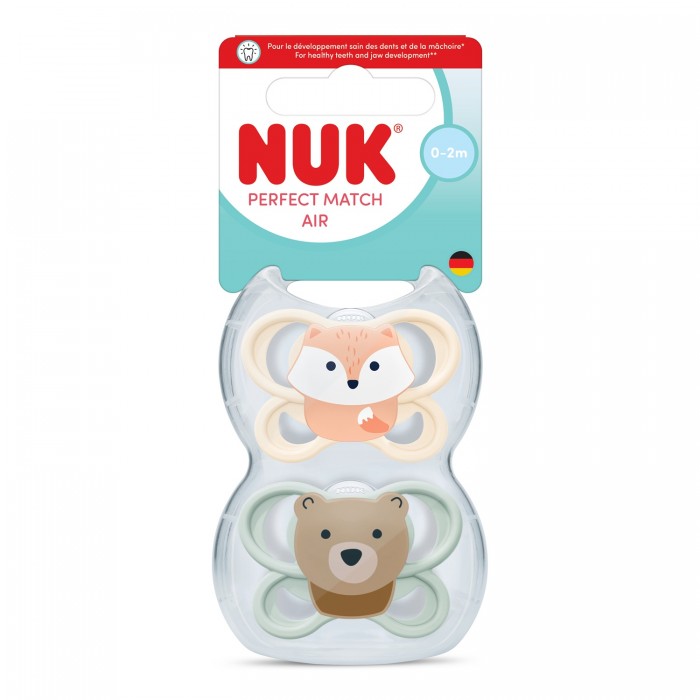 NUK Цуцла Лажалка Анатомска Силикон "Perfect Match AIR"2/box (0-2m)
