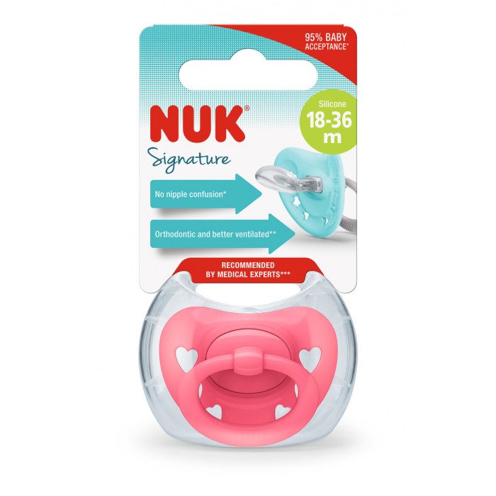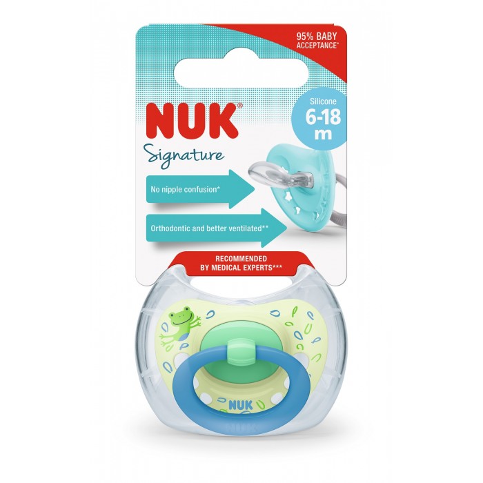 NUK Signature цуцлата доаѓа со некршлива хигиенска кутија која може да се користи и како сад за брза стерилизација на цуцлата во микро бранова печка. NUK Signature цуцлите се произведени во Германија согласно највисоките стандарди за безбедност и квалитет.