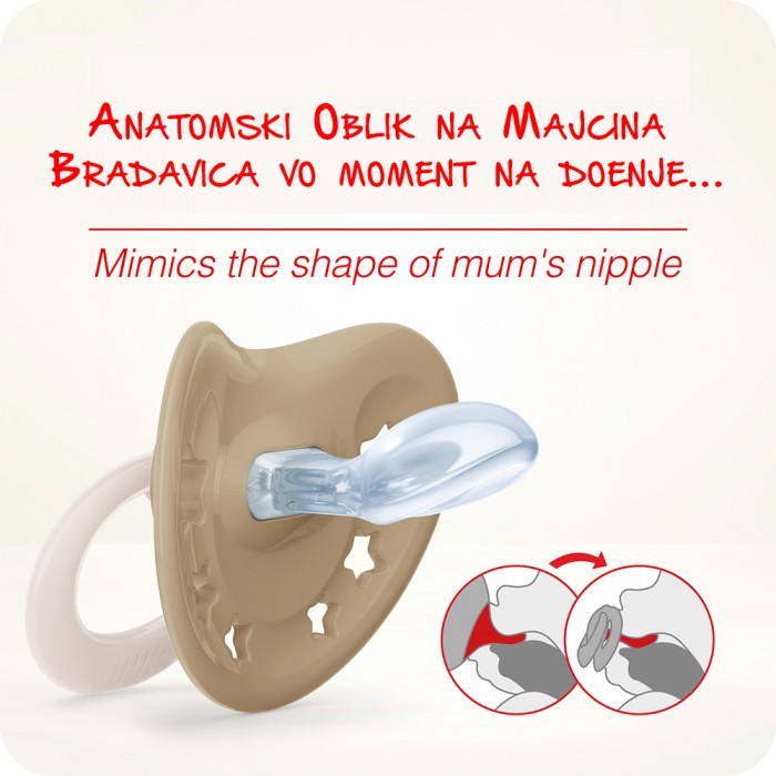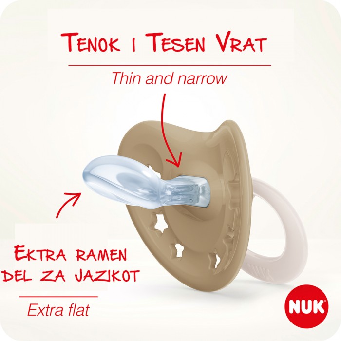 Секојдневно вашите најмили поминуваат низ безброј возбудувања и авантури, во кои верно ги придружува нивниот пријател на кој можат да се потпрат во било кое време - NUK Анатомската Цуцла. Таа ќе им пружи смиреност и сигурност во непријатните ситуации. Без оглед дали непознати лица, звуци или непознатото окружување се причина за немирот на вашето дете, познатото смирувачко чувство на цицање на цуцлата ќе овозможи повторно да се врати спокојот во нивното секојдневие.