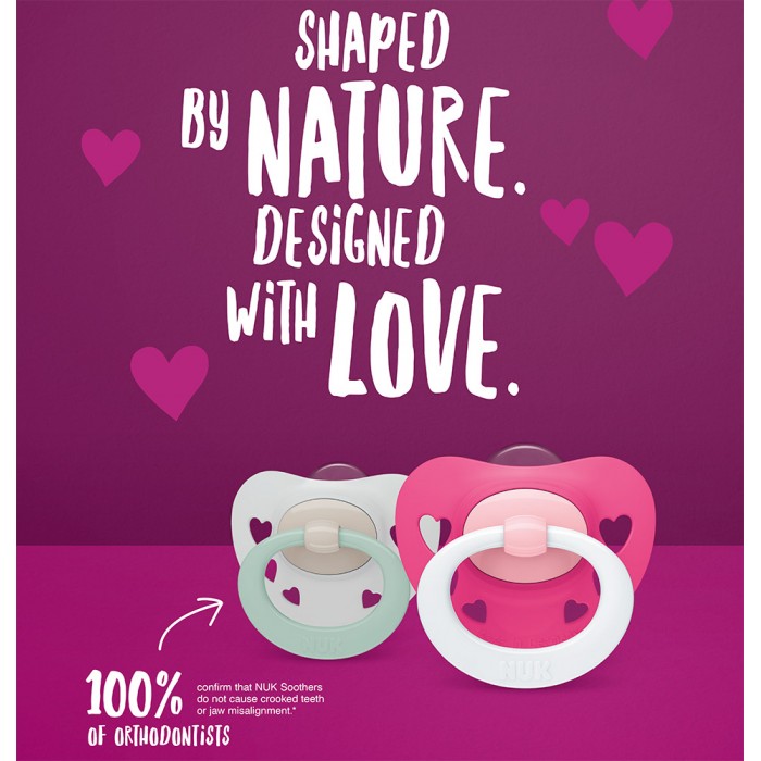 100% од Германските ортодонти тврдат дека анатомските NUK цуцли не предизвикуваат деформации**. 95% од бебињата во Германија ги прифаќаат без проблем NUK анатомските цуцли*. 90% од германските мајки би ги препорачале NUK анатомските цууцли на други*, а 92% од германските доилки тврдат дека NUK цуцлите лажалки не влијаат врз доењето*.*