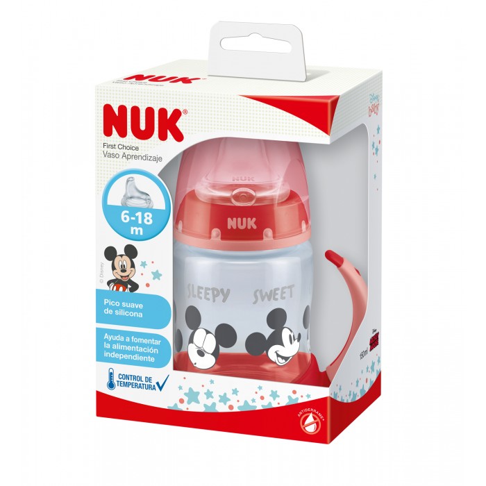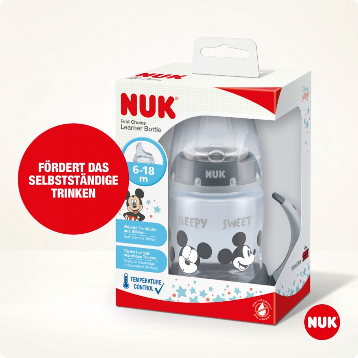 Temperature Control - е најновата функција на NUK First Choice+ шишенцата со помош на која во секое време ќе знаете дали температурата на подготвената храна е соодветна за вашето дете. Оваа функција е представена во вид на три линии поставени на задната страна по должината на шишенцето, веднаш до мерната скала. Како што се менува температурата на храната така се менува и бојата на трите споменати линии. Доколку храната е претопла линиите ќе побелат т.е. ќе станат бели. Доколку бојата на линиите е темно сина во тој случај храната не е доволно загреана. Храната е на соодветна температура во момент кога трите линии ќе бидат СВЕТЛО СИНИ, т.е. температурата на храната е приближно 37ºC, што се смета за идеална температура за деца и бебиња. Секако не оставајте на случајноста, и секогаш пред да ја дадете храната на вашето дете проверете ја топлината на истата со капнување неколку капки на вашата дланка.