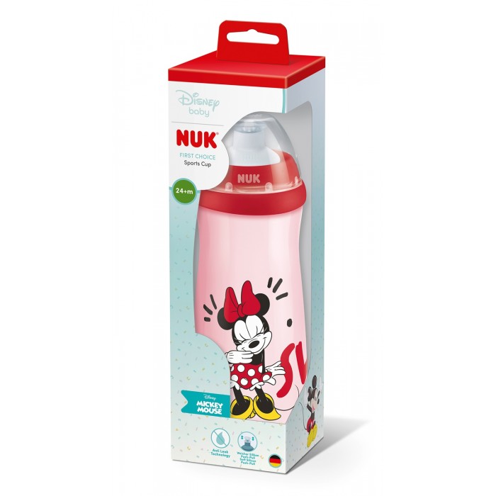 Она што децата најмногу го сакаат е истражувањето, колку повеќе растат толку повеќе сакаат да го поминуваат времето во игра надвор од домот. Многуте возбудувања често ги прават жедни, и затоа тука е Sports Cup кој без потреба од прекин на забавата ќе им ја гаси жедта на лице место. Со својот голем капацитет од 450мл одговара на потребите на активните деца. Поседува систем за отворање и затворање кој е изработен од високо квалитетен, хигиенски силикон кој се карактеризира со трајност. Шишенцето и деловите можат да се мијат во машина за садови. Со закачка за ранец или ремен за активните деца да имаат слободни раце во секое време. Изработено од високо квалитетен полипропилен, кој е некршлив и траен, но пред се безбеден и хигиенски материјал. Компатибилно со сите елементи на NUK First Choice+ програмата.