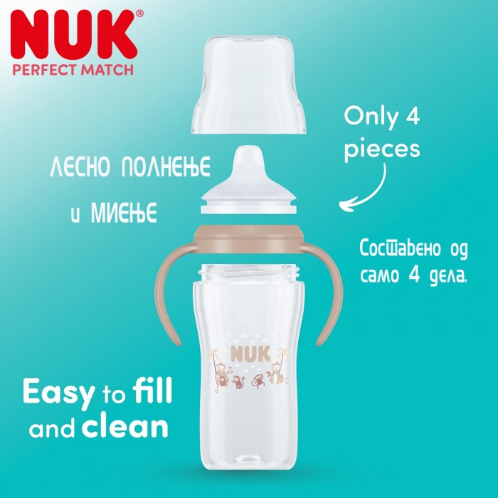 • NUK Perfect Match Learner Bottle "Шишенце со Рачки и Некапечко Клунче 150/260ml" 6m+