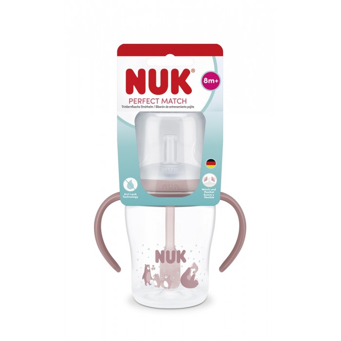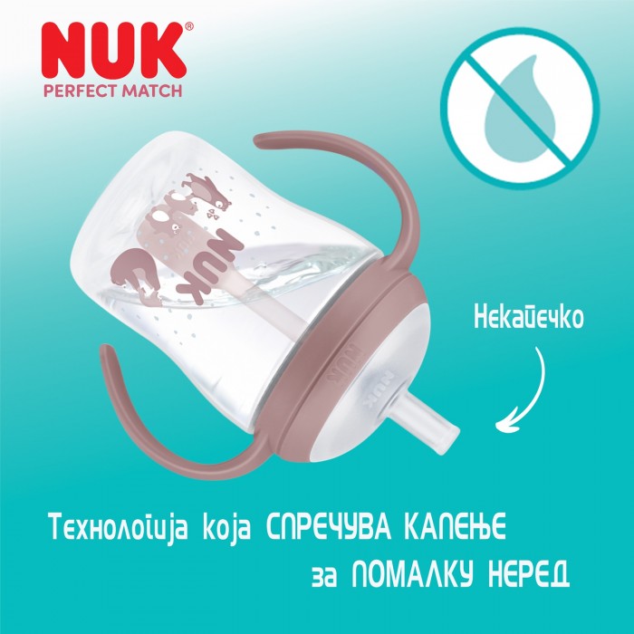 NUK Perfect Match Learner Straw Cup "Шишенце со Рачки и Некапечкo Цевче150/260ml" 8m+