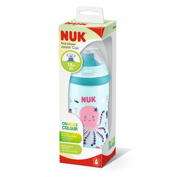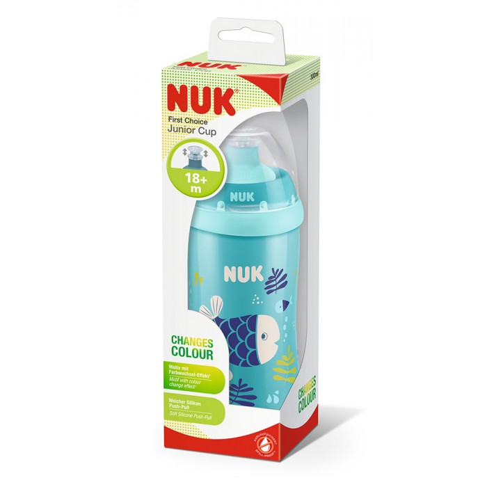 Она што децата најмногу го сакаат е истражувањето, колку повеќе растат толку повеќе сакаат да го поминуваат времето во игра надвор од домот. Многуте возбудувања често ги прават жедни, но затоа тука е Junior Cup кој без потреба од прекин на забавата ќе ја гаси жедта на лице место. Со својот капацитет од 300мл одговара на потребите на активните деца. Поседува систем за отворање и затворање кој е изработен од високо квалитетен, хигиенски силикон кој се карактеризира со трајност. Шишенцето и деловите можат да се мијат во машина за садови. Со закачка за ранец или ремен за активните деца да имаат слободни раце во секое време. Изработено од високо квалитетен Полипропилен, кој е некршлив и траен, но пред се безбеден и хигиенски материјал. Компатибилно со сите елементи на NUK First Choice+ програмата.