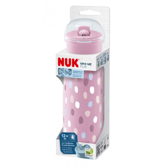 Целосно инклузивно во твојот животен стил: NUK Mini Me колекцијата на шишенца представува систем кој може да се комбинира и расте заедно со вашето дете. Можете да бирате помеѓу сад од нерѓосувачки челик или тврда некршлива BPA пластика, или пак помеѓу различните капацитети на садот. Бирајте помеѓу различните продолжетоци за пиење, изберете фиксиран продолжеток SIP или пак преклопивиот FLIP. Со еден збор сите типови шишенца од линијата NUK Min-Me се комбинираат и ви овозможуваат да составите баш онакво какво што му одговара на вашето дете и вам. Самите шишенца се некршливи и некапечки и со тоа спремни за сите авантури што следат. Овие шишенца го интегрираат сопствениот изглед со вашиот животен стил без разлика дали се користи од детето или за потребите на мајката.