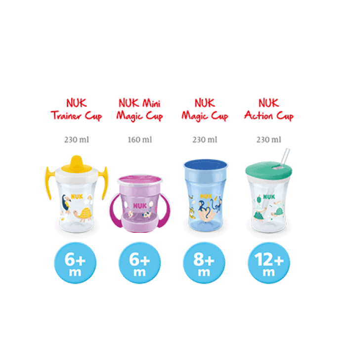 Учењето самостојно пиење е еден од поголемите предизвици  во развојот и растењето на децата. Magic Cup чашките се вистинска помош  во совладувањето на тој предизвик и истите им овозможуваат на децата да пијат како возрасни, од сите страни на чашата. Магијата се состои во тоа што додека учат децата не можат да направат неред бидејќи тенкиот силиконски диск го затвора протокот на чашката кога таа не се користи. Доволен е само мал допир на усните на работ на чашата и малку да се повлече и силиконскиот диск веднаш го ослободува протокот.