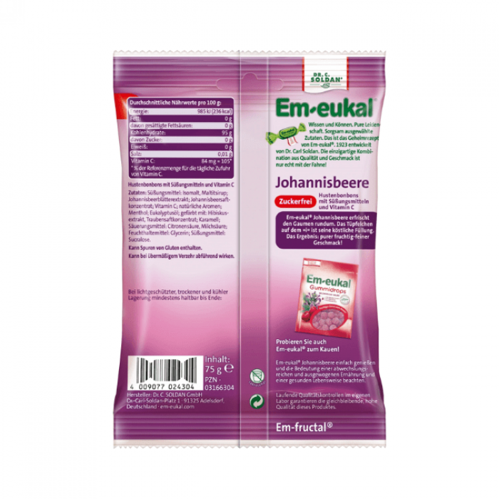 • Em-Eukal тврди бонбони без шеќер со Витамин Ц "Црна Рибизлаt" 75г.