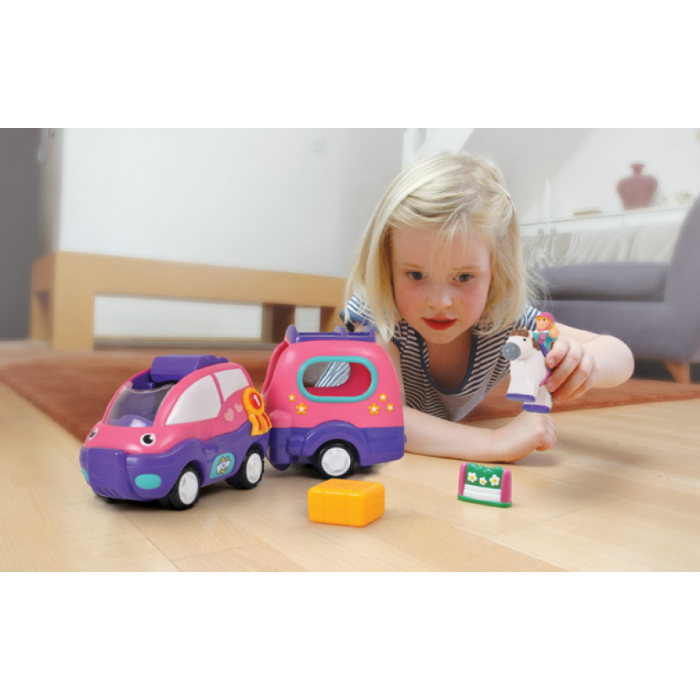 WOW TOYS WOW Toys Колата за Коњче на "Poppy" (1.5-5 год.) WOW Toys Колата за Коњче на "Poppy" (1.5-5 год.) Авантура во природа со сопствено пони коњче, тоа го нуди Попи за нејзините другарчиња. Сетот содржи: кола, приколка за коњче, фигура на Попи, фигура на коњче, препрека за скокање и бала со сено. Со фрикционен мотор, само потурнете ја колата и таа ќе продолжи сама да вози испуштајќи звук на вистинско возило во движење. Кабината на колат.. Category: Product #: 10319 Regular price: 1.432 ден. 1.432 Available from: Euroalba dooel