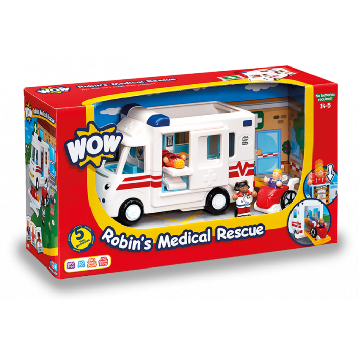 WOW TOYS WOW Toys Брзата помиш на "Robin" (1-5 год.) WOW Toys Брзата помиш на "Robin" (1-5 год.) Супер играчка за малите доктори кои се спремни да помагаат и во најтешки ситуации. Сетот содржи : брза помош, фигури на лекар и 2 фигури на повредени, кревет и количка за транспорт на болни. Со силен фрикционен мотор, само потурнете го и тој ќе продолжи сам да вози. Со реалистичен звук на моторот. Стави го повредениот во кревет на тркалца и.. Category: Product #: 10141 Regular price: 2.152 ден. 2.152 Available from: Euroalba dooel