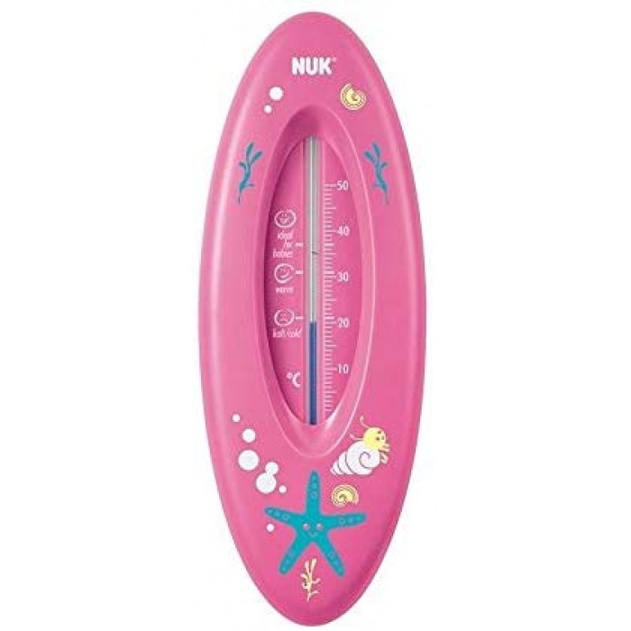 Ставете го термометарот во вода и едноставно погледнете дали температурата на водата за капење одговара на препораката наведена на скалата и забавата може да почне. Се работи за потполно безбеден термометер кој не содржи жива. Мерењето се врши со потполно безбедна природна течност те со масло од репка. Произведен е во Германија од високо квалитетна некршлива пластика.