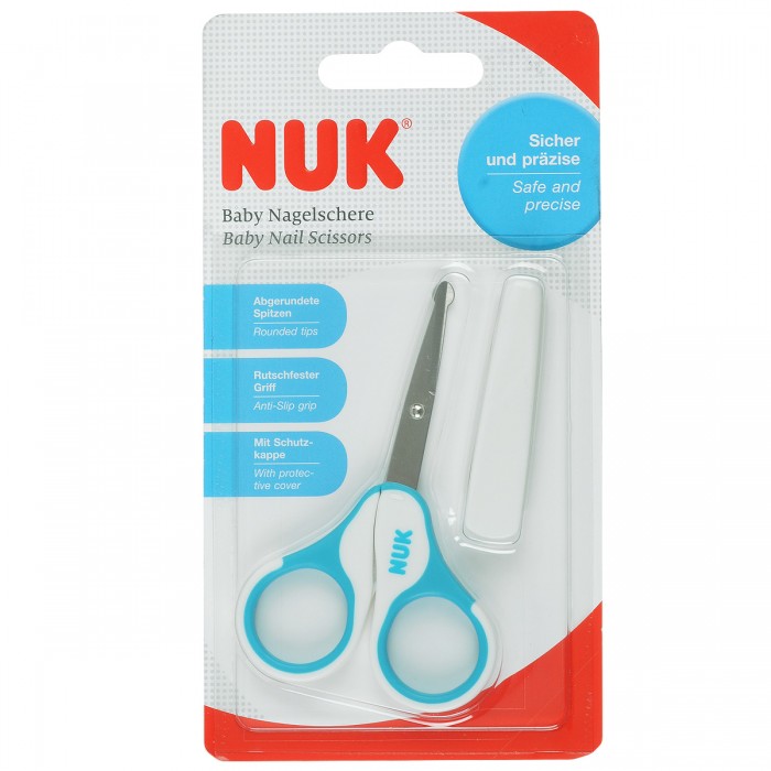 Беби ножичките на НУК овозможуваат безбедна хигиена на ноктите на бебињата и ја прават истата лесна и едноставна. Сечилата се од нерѓосувачки челик со заоблен тап врв и се заштитени со специјална футрола, додека рачките се обложени со специјален нелизгав материјал.