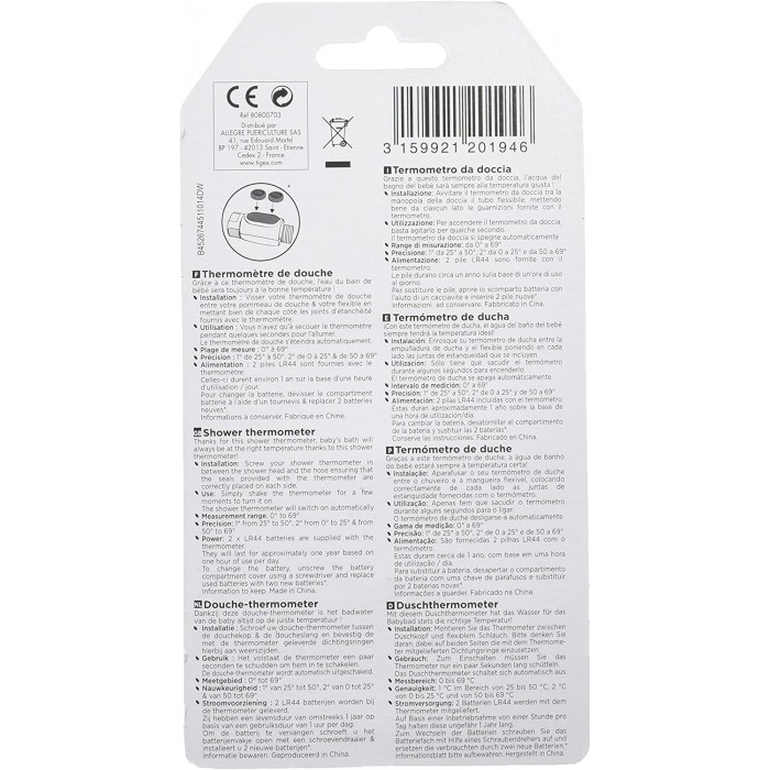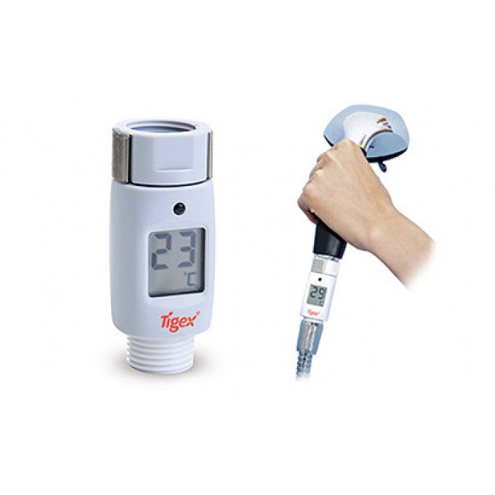 • Дигитален термометар за туш батерија, наменет за директно отчитување на температура на вода за капење.